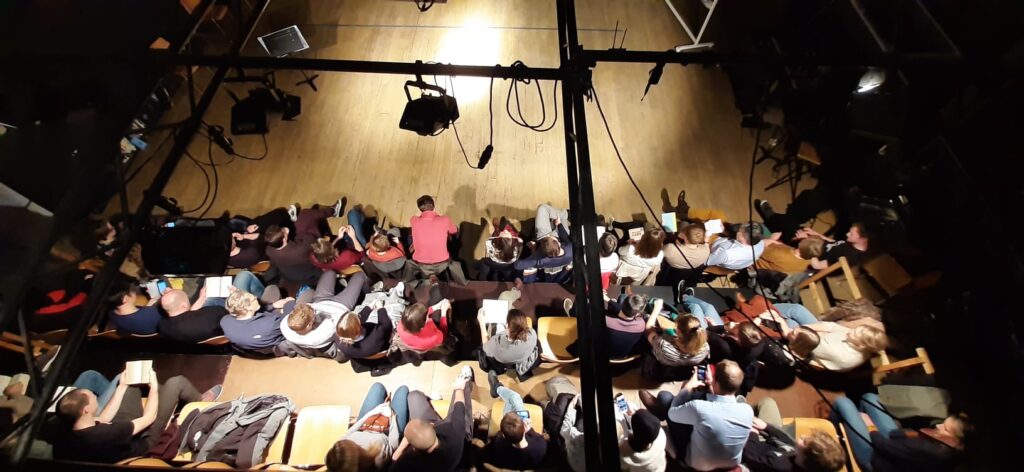 Op ons uitzinnige optreden, het laatste voor corona, van 1 februari 2020 kwam Bruzz langs en maakte er een prachtige reportage van: Nederlandstalig improvisatietheater pioniert in GC De Markten.